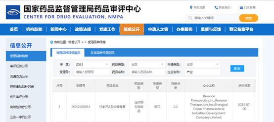 ¸´ÐÇÒ½Ò©Á¢ÒìÐÍÈâ¶¾ËØ²úÆ·RT002ÖÎÁÆË³Ó¦Ö¢ÉÏÊÐÉêÇë»ñÊÜÀí