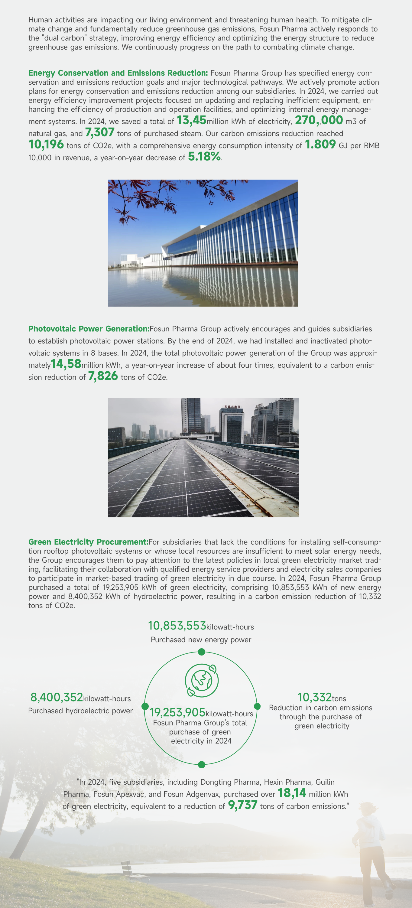 In 2024, we purchased over 19.25 million kWh of green electricity, reducing carbon emissions by 10,332 tons through these purchases
