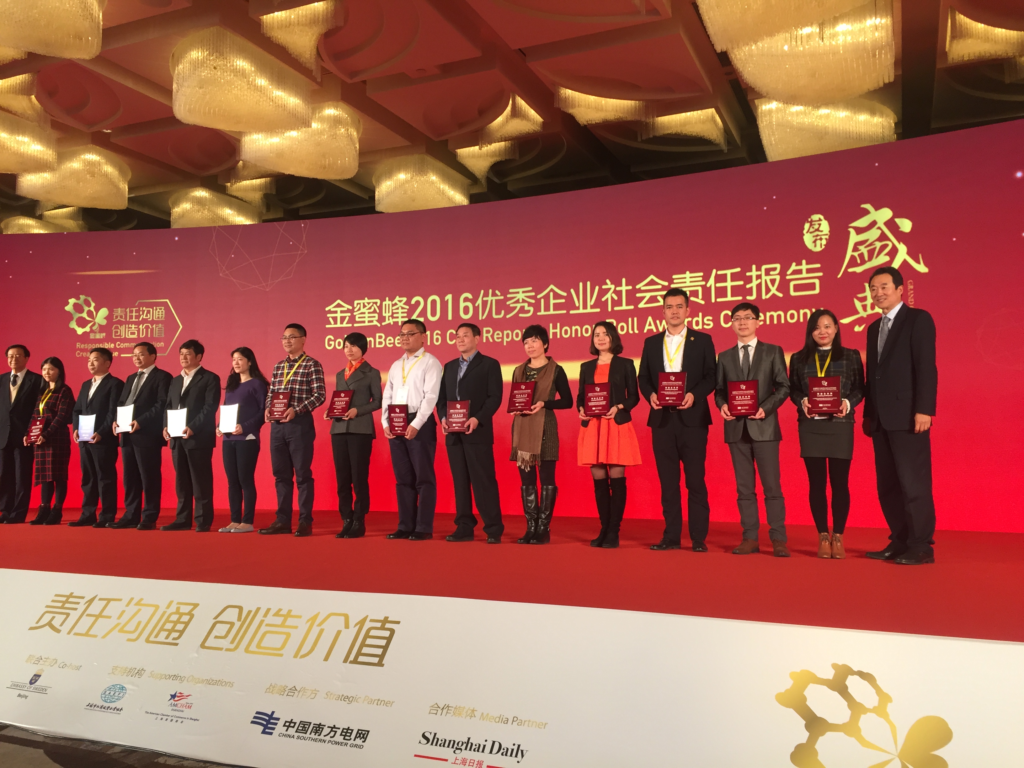 復星醫藥榮獲「金蜜蜂2016優秀企業社會責任報告·領袖型企業獎」